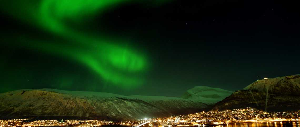 Questa crociera di 2 ore e mezza a bordo del fantastico catamarano panoramico MS Rygerdronningen ti accompagna in un’affascinante ricerca dell’Aurora Boreale, partendo dal centro di Tromsø.